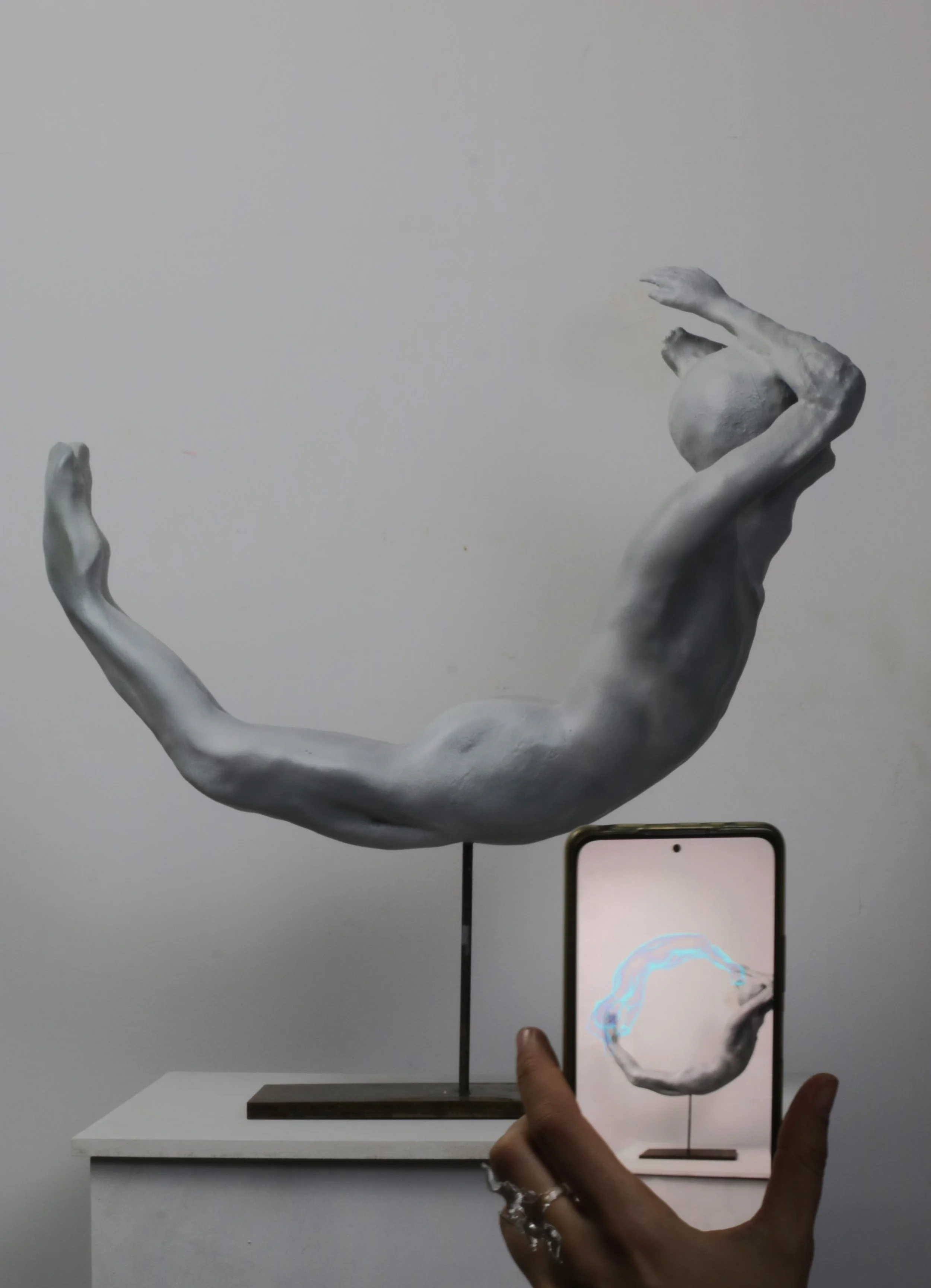 With the hologram, I aim to represent the duality of presence and absence. In the context of my sculpture series, the hologram completes the circle, giving meaning to the work even when it is not physically visible. By existing both digitally and materially, it reinforces the idea of cyclical history and memory, inviting viewers to reflect on what remains, what disappears, and how past and present continuously intertwine.